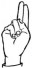 На ћирилици написано ШАЛЕ ПЕРИЋ састоји се из 9 слова [?]. Исписано ћириличном једноручном азбуком за глувонеме: